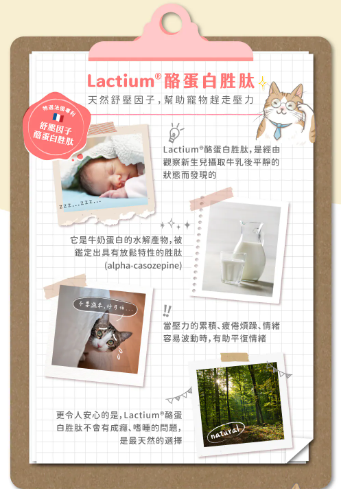 添加法國專利酪蛋白胜肽,天然舒壓因子,幫助貓主子「食食」好心情。低磷低鈉配方,