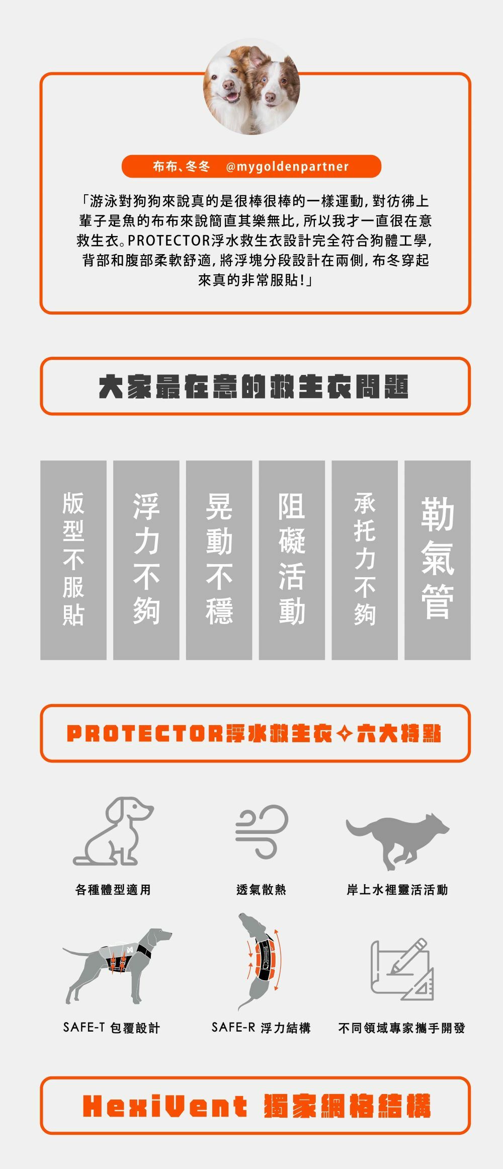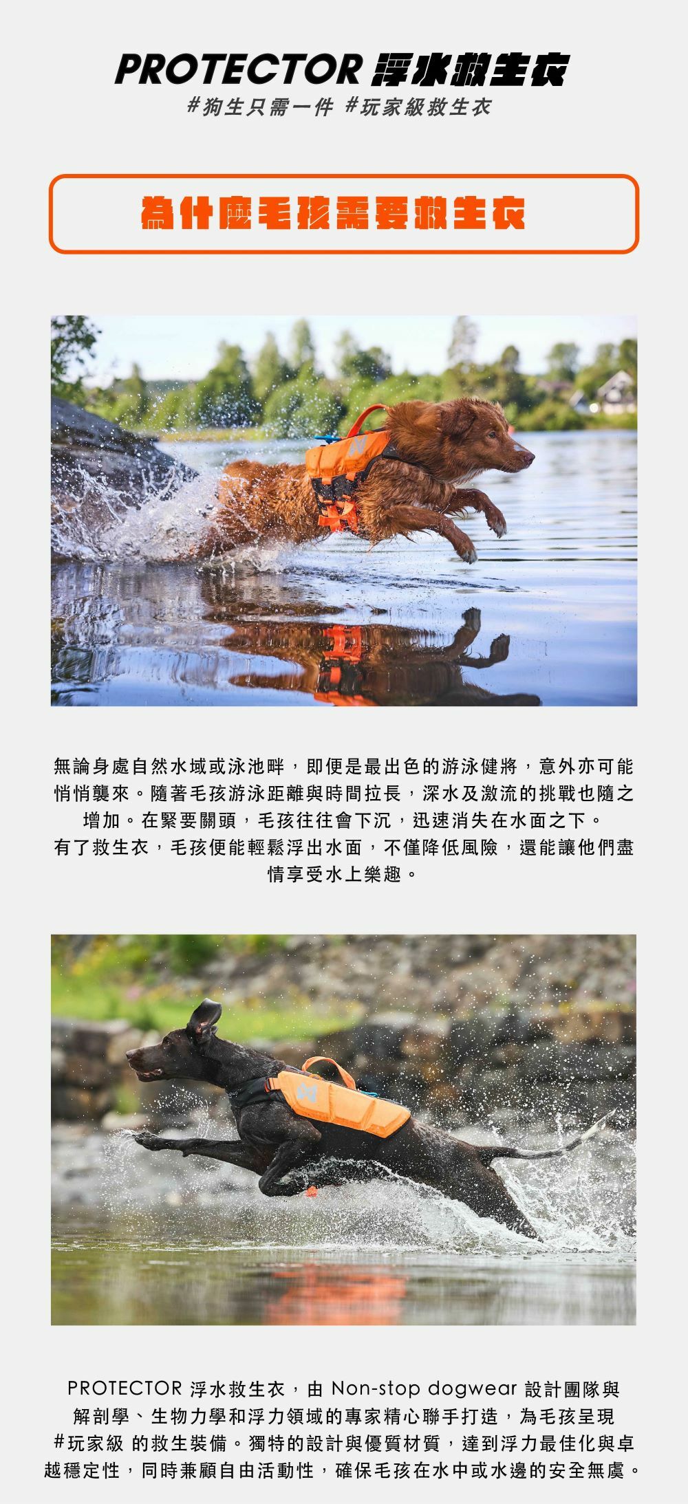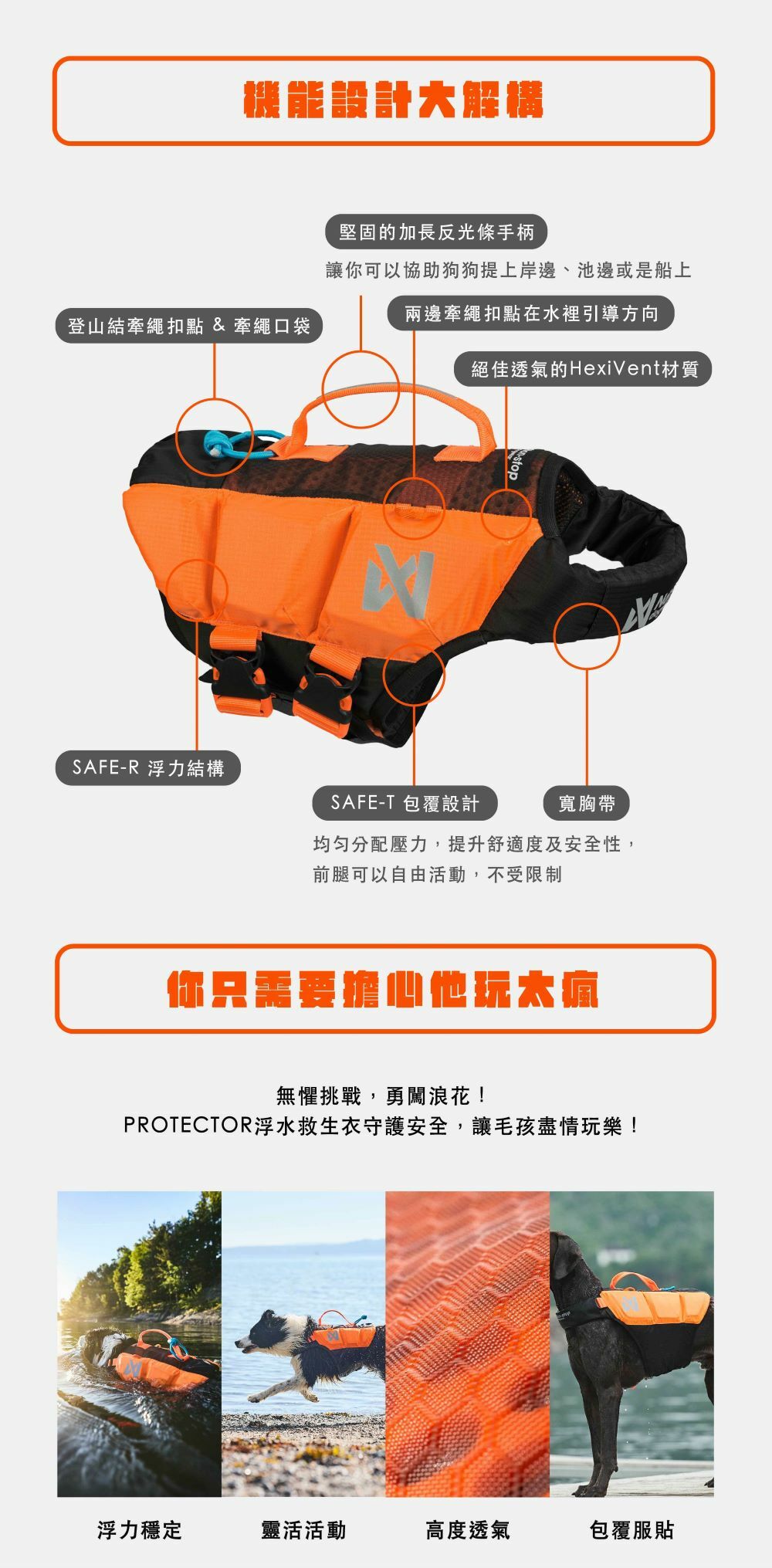 PROTECTOR浮水救生衣 — 全世界最先進的專業犬用救生衣,為浮力輔助裝備設了新的標竿。