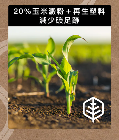 🐾含有20%玉米澱粉加再生塑料: 減少碳足跡