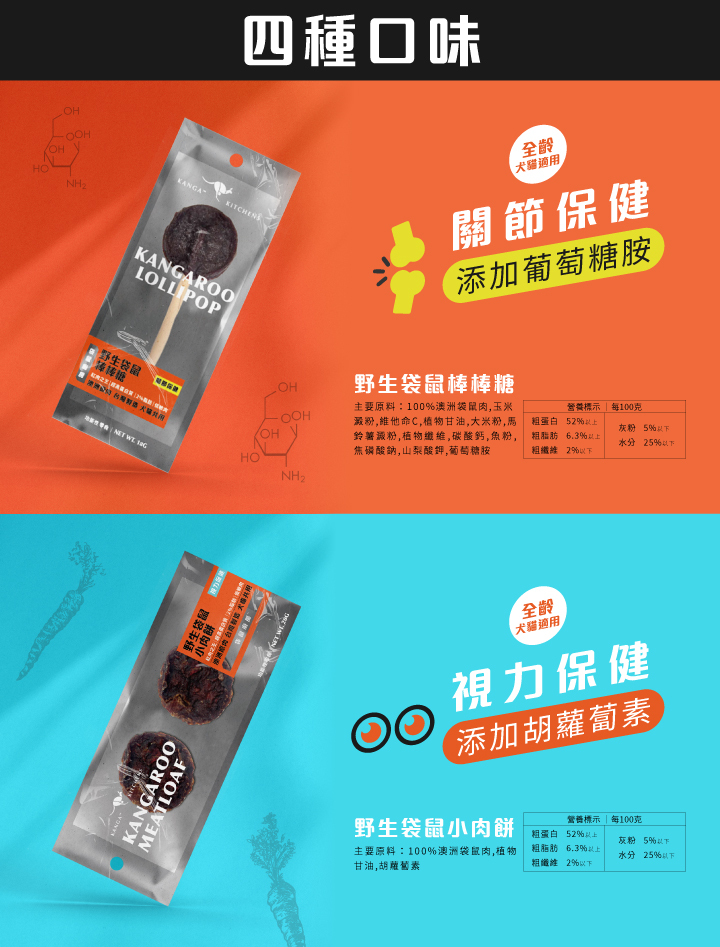 ❶袋鼠棒棒糖:添加葡萄糖胺,關節好靈活(含玉米澱粉)